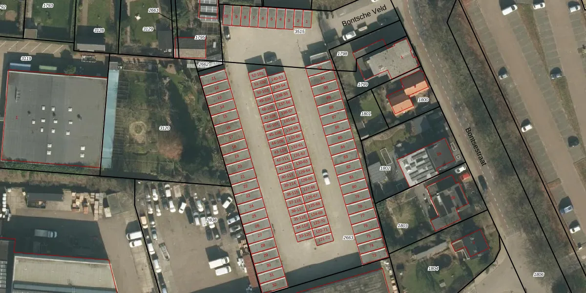 Het perceel waarop Bontsche Veld 132 staat heeft een oppervlakte van 3433 m². Dit is een zeer groot perceel. De perceeloppervlakte wordt geregistreerd door het Kadaster. Gedetailleerde informatie over de maten van dit perceel kunt u vinden in het rapport Kadastrale kaart met maatvoering van Bontsche Veld 132.
