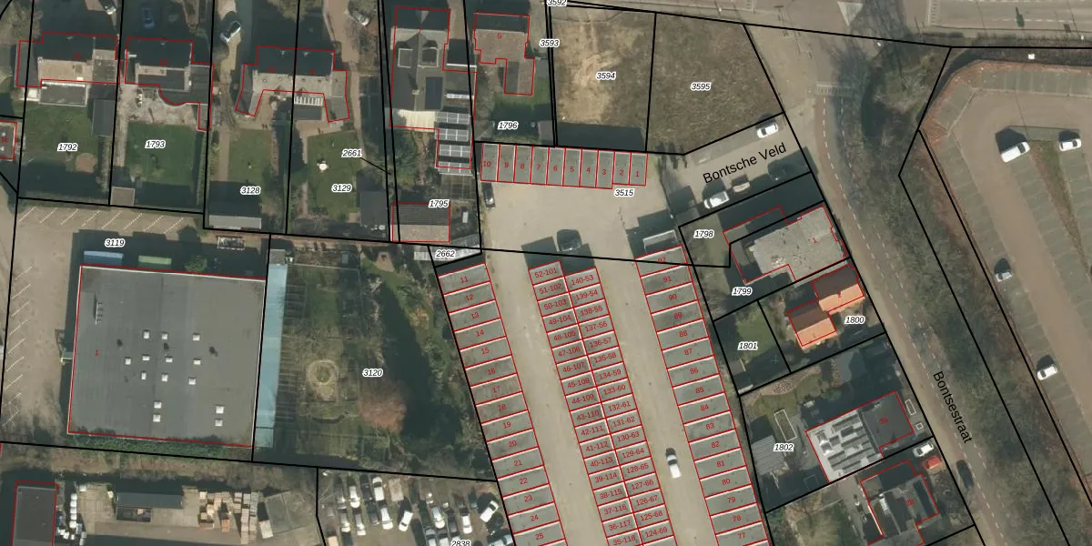 Het perceel waarop Bontsche Veld 52 staat heeft een oppervlakte van 3433 m². Dit is een zeer groot perceel. De perceeloppervlakte wordt geregistreerd door het Kadaster. Gedetailleerde informatie over de maten van dit perceel kunt u vinden in het rapport Kadastrale kaart met maatvoering van Bontsche Veld 52.