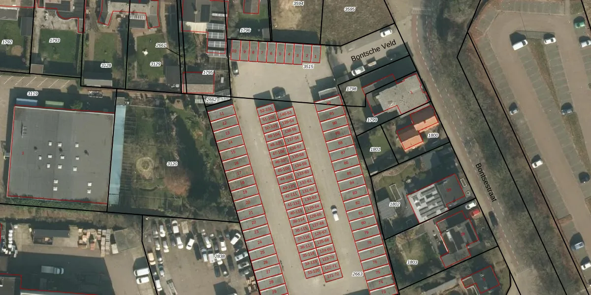 Bontsche Veld 57 is gelegen op kadastraal perceel CUI00B2663. Deze kadastrale aanduiding is uniek en wordt gebruikt door het Kadaster om eigendomsrechten en andere zakelijke rechten vast te leggen. Het perceel maakt onderdeel uit van de kadastrale gemeente Cuijk.