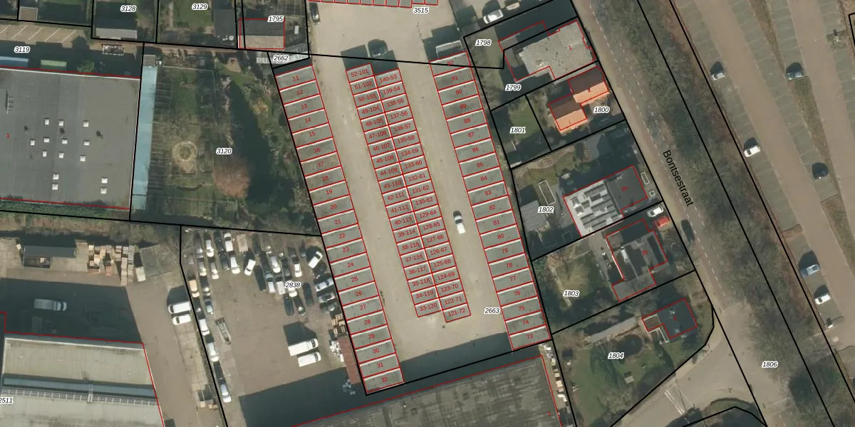 Het perceel waarop het adres ligt is CUI00-B-2663. De afkorting 'CUI00' staat voor kadastrale gemeente Cuijk. Het perceel is kleiner dan gemiddeld in Cuijk. Het perceel is 3433 m² groot, terwijl het gemiddelde ligt op 3869,84 m². Het kleinste perceel in de kadastrale gemeente is 0 m² groot. De grootste perceeloppervlakte is 72,5 ha. Op het perceel zijn 121 adressen aanwezig. De huidige grenzen van het perceel zijn digitaal in de Basisregistratie Kadaster (BRK) geregistreerd op 16-10-2006.