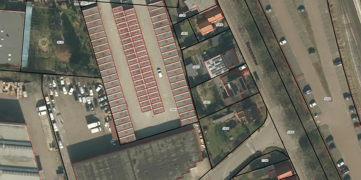 Het perceel waarop het adres ligt is CUI00-B-2663. De afkorting 'CUI00' staat voor kadastrale gemeente Cuijk. Het perceel is kleiner dan gemiddeld in Cuijk. Het perceel is 3433 m² groot, terwijl het gemiddelde ligt op 3869,84 m². Het grootste perceel in de kadastrale gemeente is 72,5 ha. Het kleinste perceel heeft een oppervlakte van 0 m². Op het perceel liggen in totaal 121 adressen. De huidige grenzen van het perceel zijn digitaal in de Basisregistratie Kadaster (BRK) geregistreerd op 16-10-2006.