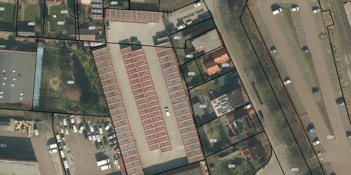 Het perceel waarop Bontsche Veld 85 staat heeft een oppervlakte van 3433 m². Dit is een zeer groot perceel. De perceeloppervlakte wordt geregistreerd door het Kadaster. Gedetailleerde informatie over de maten van dit perceel kunt u vinden in het rapport Kadastrale kaart met maatvoering van Bontsche Veld 85.