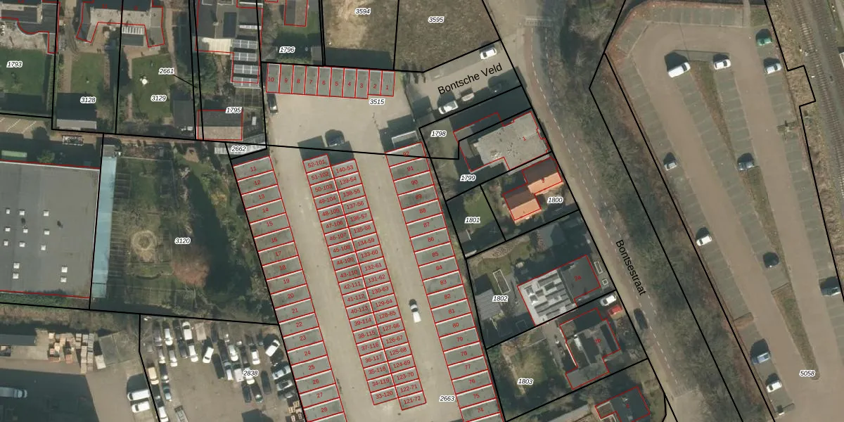 Het perceel waarop Bontsche Veld 88 staat heeft een oppervlakte van 3433 m². Dit is een zeer groot perceel. De perceeloppervlakte wordt geregistreerd door het Kadaster. Gedetailleerde informatie over de maten van dit perceel kunt u vinden in het rapport Kadastrale kaart met maatvoering van Bontsche Veld 88.