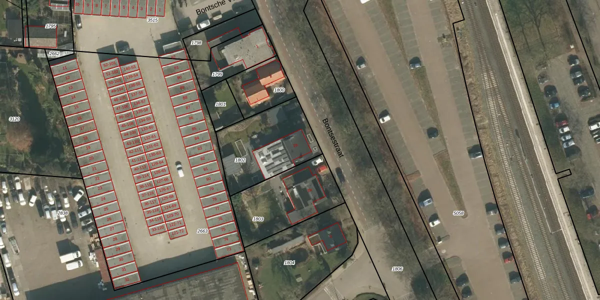 Het perceel waarop Bontsestraat 2-a staat heeft een oppervlakte van 650 m². Dit is een groot perceel. De perceeloppervlakte wordt geregistreerd door het Kadaster. Gedetailleerde informatie over de maten van dit perceel kunt u vinden in het rapport Kadastrale kaart met maatvoering van Bontsestraat 2-a.