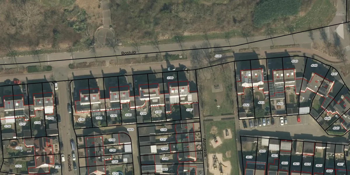 Het perceel waarop Bostulp 19 staat heeft een oppervlakte van 238 m². Dit is een middelgroot perceel. De perceeloppervlakte wordt geregistreerd door het Kadaster. Gedetailleerde informatie over de maten van dit perceel kunt u vinden in het rapport Kadastrale kaart met maatvoering van Bostulp 19.