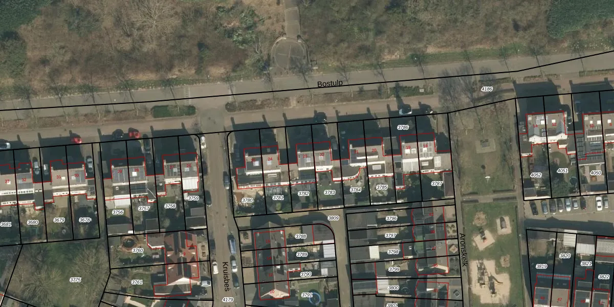 Het perceel waarop Bostulp 23 staat heeft een oppervlakte van 238 m². Dit is een middelgroot perceel. De perceeloppervlakte wordt geregistreerd door het Kadaster. Gedetailleerde informatie over de maten van dit perceel kunt u vinden in het rapport Kadastrale kaart met maatvoering van Bostulp 23.