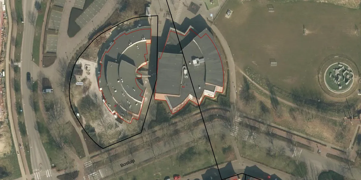 Het perceel waarop Bostulp 52 staat heeft een oppervlakte van 3,3 ha. Dit is een zeer groot perceel. De perceeloppervlakte wordt geregistreerd door het Kadaster. Gedetailleerde informatie over de maten van dit perceel kunt u vinden in het rapport Kadastrale kaart met maatvoering van Bostulp 52.