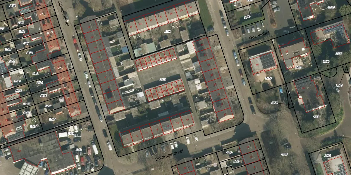Botdragerdreef 153 is gelegen op kadastraal perceel CUI00A2174. Deze kadastrale aanduiding is uniek en wordt gebruikt door het Kadaster om eigendomsrechten en andere zakelijke rechten vast te leggen. Het perceel maakt onderdeel uit van de kadastrale gemeente Cuijk.
