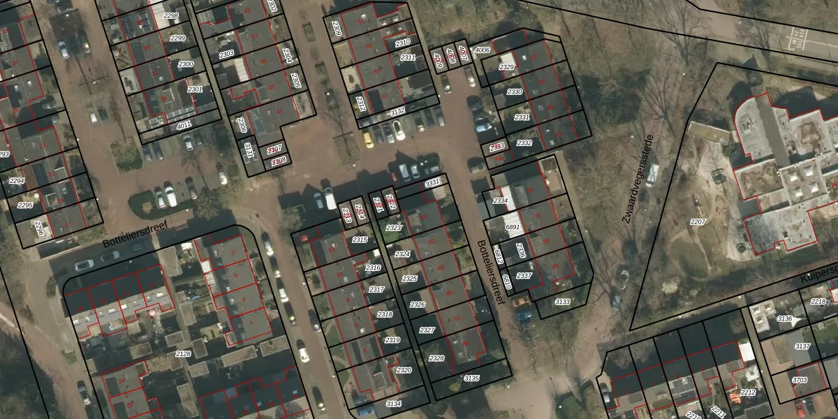 Botteliersdreef 59 is gelegen op kadastraal perceel CUI00A2323. Deze kadastrale aanduiding is uniek en wordt gebruikt door het Kadaster om eigendomsrechten en andere zakelijke rechten vast te leggen. Het perceel maakt onderdeel uit van de kadastrale gemeente Cuijk.