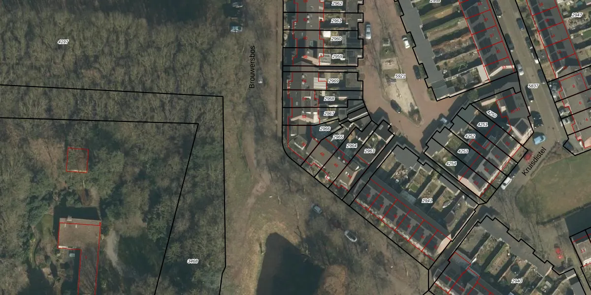 Brouwersbos 50 is gelegen op kadastraal perceel CUI00A2966. Deze kadastrale aanduiding is uniek en wordt gebruikt door het Kadaster om eigendomsrechten en andere zakelijke rechten vast te leggen. Het perceel maakt onderdeel uit van de kadastrale gemeente Cuijk.