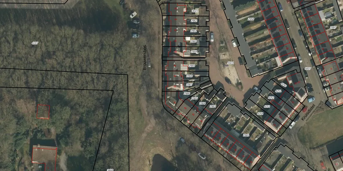 Brouwersbos 52 is gelegen op kadastraal perceel CUI00A2967. Deze kadastrale aanduiding is uniek en wordt gebruikt door het Kadaster om eigendomsrechten en andere zakelijke rechten vast te leggen. Het perceel maakt onderdeel uit van de kadastrale gemeente Cuijk.