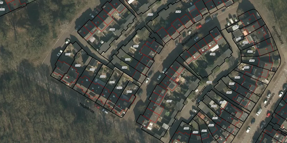 Gebruik de zoekbalk of klik op een perceel voor informatie over de adressen binnen dit perceel.