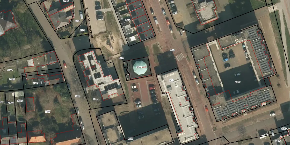 Cantheelen 39 is gelegen op kadastraal perceel CUI00A5844. Deze kadastrale aanduiding is uniek en wordt gebruikt door het Kadaster om eigendomsrechten en andere zakelijke rechten vast te leggen. Het perceel maakt onderdeel uit van de kadastrale gemeente Cuijk.