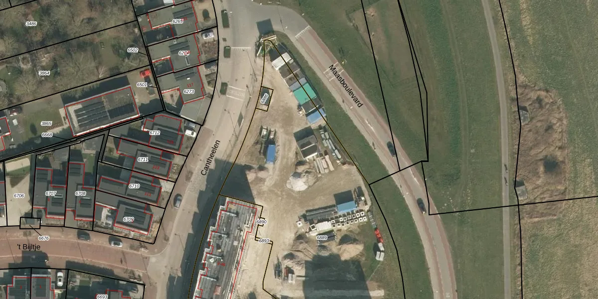 Cantheelen 54 is gelegen op kadastraal perceel CUI00A6889. Deze kadastrale aanduiding is uniek en wordt gebruikt door het Kadaster om eigendomsrechten en andere zakelijke rechten vast te leggen. Het perceel maakt onderdeel uit van de kadastrale gemeente Cuijk.