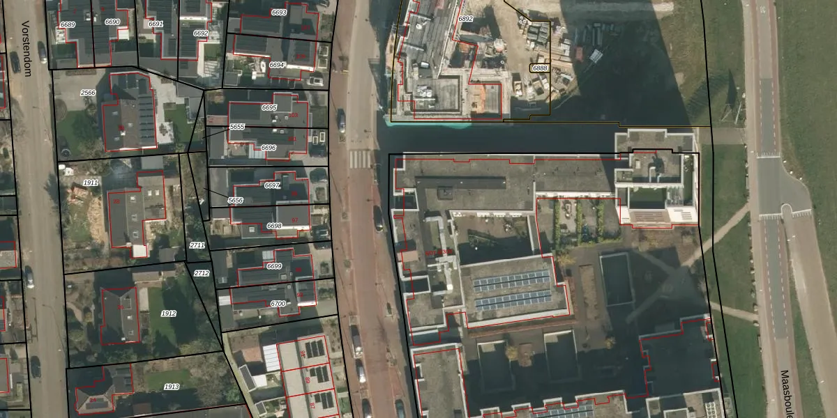 Het perceel waarop het adres ligt is CUI00-A-6233. De afkorting 'CUI00' staat voor kadastrale gemeente Cuijk. De oppervlakte van het perceel is 1,0 ha. Dat is groter dan gemiddeld in Cuijk, waar de gemiddelde perceeloppervlakte op 3859,9 m² ligt. Het grootste perceel in de kadastrale gemeente is 72,5 ha. Het kleinste perceel heeft een oppervlakte van 0 m². Op het perceel liggen in totaal 156 adressen. In de Basisregistratie Kadaster (BRK) werden de grenzen van het perceel geregistreerd op 14-02-2018.