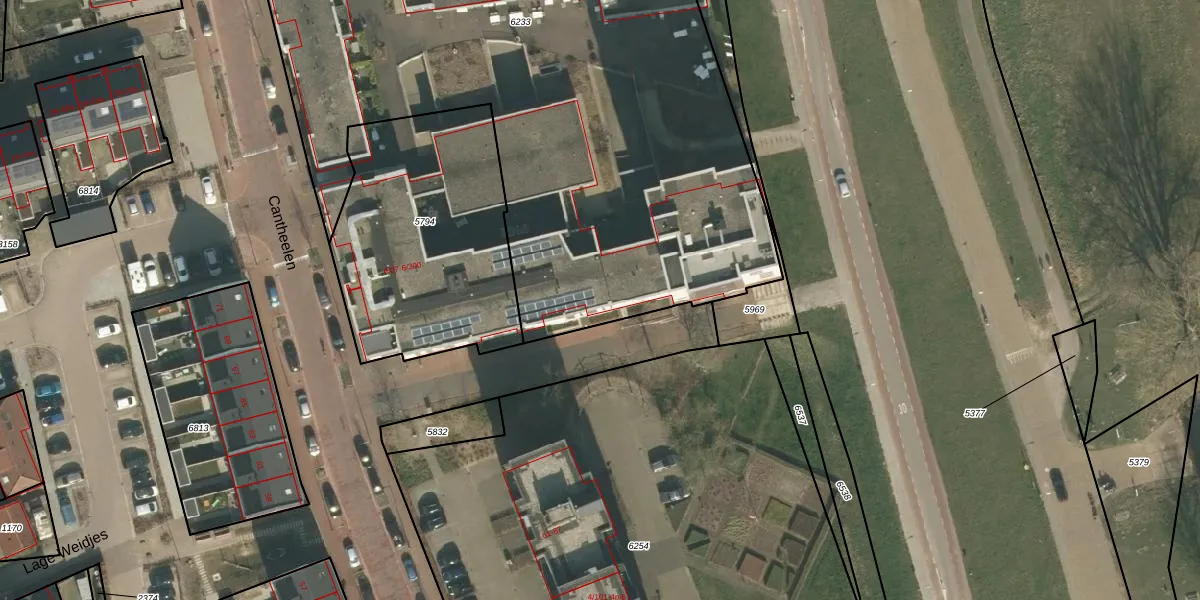 Cantheelen 6-115 is gelegen op kadastraal perceel CUI00A6233. Deze kadastrale aanduiding is uniek en wordt gebruikt door het Kadaster om eigendomsrechten en andere zakelijke rechten vast te leggen. Het perceel maakt onderdeel uit van de kadastrale gemeente Cuijk.