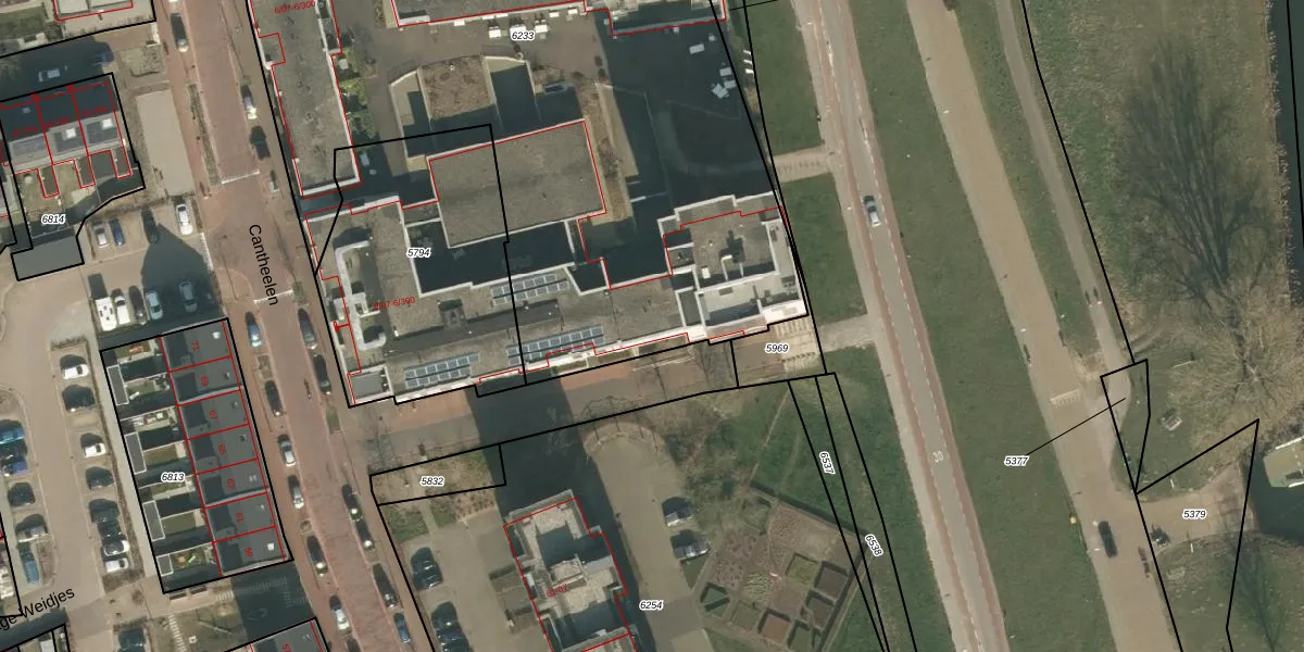 Cantheelen 6-117 is gelegen op kadastraal perceel CUI00A6233. Deze kadastrale aanduiding is uniek en wordt gebruikt door het Kadaster om eigendomsrechten en andere zakelijke rechten vast te leggen. Het perceel maakt onderdeel uit van de kadastrale gemeente Cuijk.