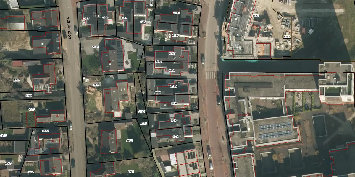 Het perceel waarop het adres ligt is CUI00-A-6697. De afkorting 'CUI00' staat voor kadastrale gemeente Cuijk. De gemiddelde perceelgrootte in Cuijk is 3859,9 m². Dit perceel is kleiner: de perceeloppervlakte bedraagt 271 m². Het kleinste perceel in de kadastrale gemeente is 0 m² groot. De grootste perceeloppervlakte is 72,5 ha. Er zijn geen andere adressen aanwezig op het perceel. De huidige grenzen van het perceel zijn digitaal in de Basisregistratie Kadaster (BRK) geregistreerd op 19-07-2021.