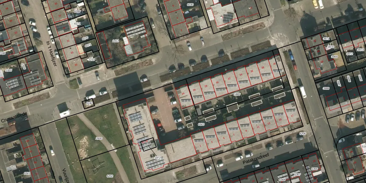 Crusaatstede 24 is gelegen op kadastraal perceel CUI00A6563. Deze kadastrale aanduiding is uniek en wordt gebruikt door het Kadaster om eigendomsrechten en andere zakelijke rechten vast te leggen. Het perceel maakt onderdeel uit van de kadastrale gemeente Cuijk.