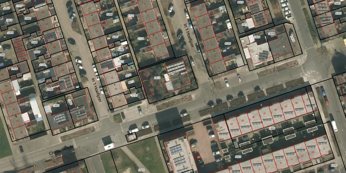 Crusaatstede 7 is gelegen op kadastraal perceel CUI00A2411. Deze kadastrale aanduiding is uniek en wordt gebruikt door het Kadaster om eigendomsrechten en andere zakelijke rechten vast te leggen. Het perceel maakt onderdeel uit van de kadastrale gemeente Cuijk.