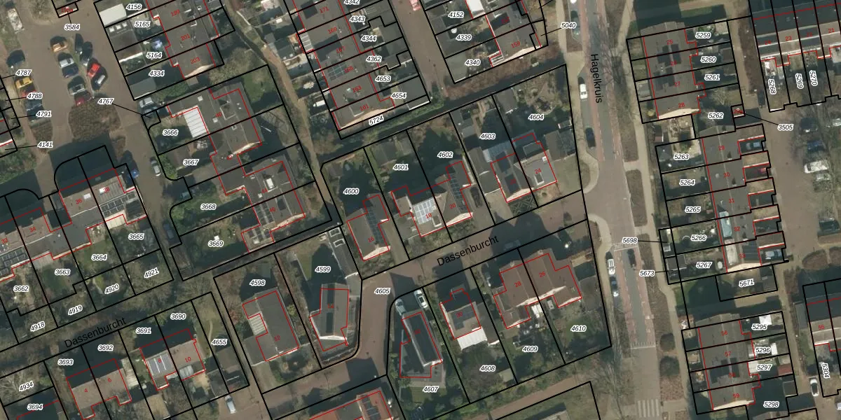 Het perceel waarop Dassenburcht 18 staat heeft een oppervlakte van 321 m². Dit is een groot perceel. De perceeloppervlakte wordt geregistreerd door het Kadaster. Gedetailleerde informatie over de maten van dit perceel kunt u vinden in het rapport Kadastrale kaart met maatvoering van Dassenburcht 18.