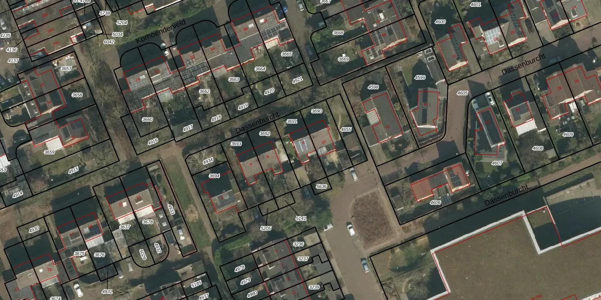 Het perceel waarop Dassenburcht 8 staat heeft een oppervlakte van 227 m². Dit is een middelgroot perceel. De perceeloppervlakte wordt geregistreerd door het Kadaster. Gedetailleerde informatie over de maten van dit perceel kunt u vinden in het rapport Kadastrale kaart met maatvoering van Dassenburcht 8.