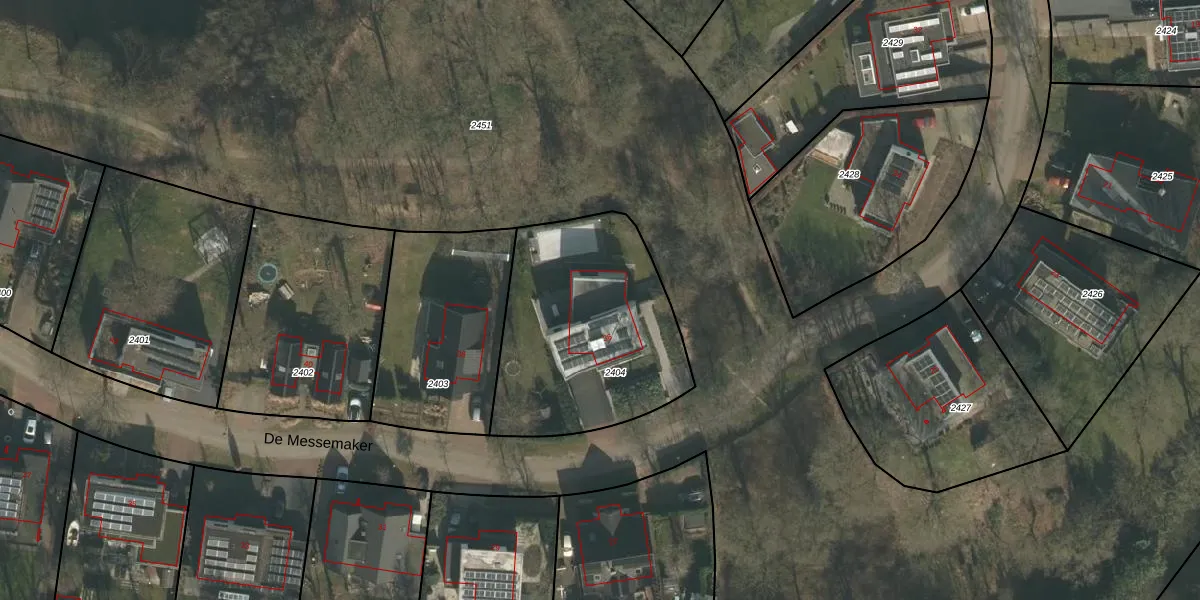 Gebruik de zoekbalk of klik op een perceel voor informatie over de adressen binnen dit perceel.