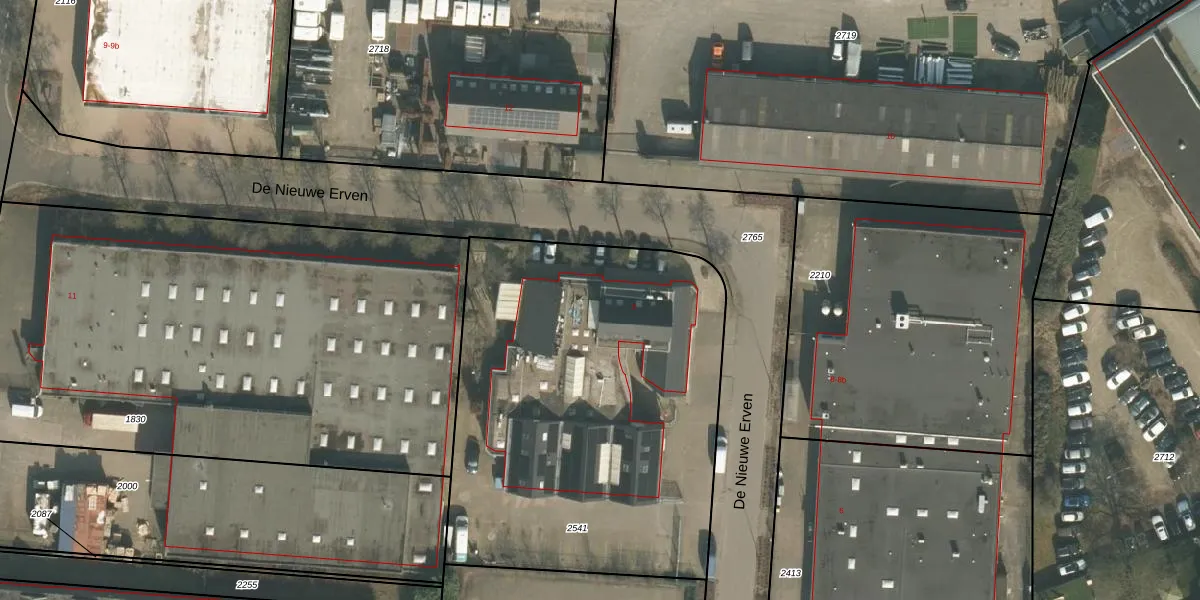 Het perceel waarop De Nieuwe Erven 3 staat heeft een oppervlakte van 2360 m². Dit is een zeer groot perceel. De perceeloppervlakte wordt geregistreerd door het Kadaster. Gedetailleerde informatie over de maten van dit perceel kunt u vinden in het rapport Kadastrale kaart met maatvoering van De Nieuwe Erven 3.