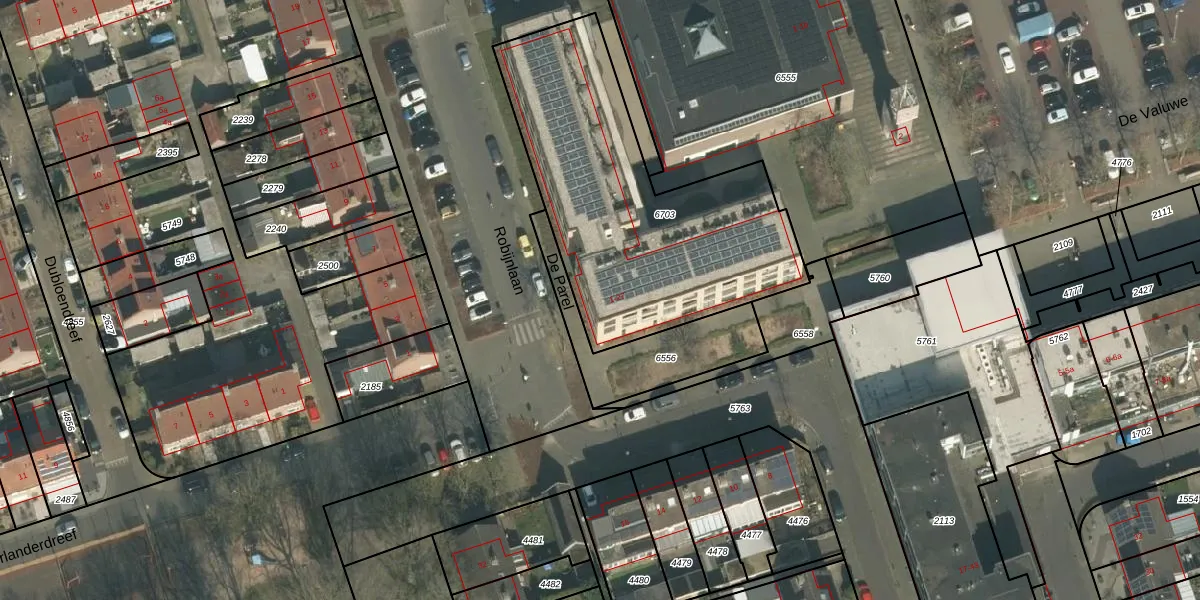 Het perceel waarop De Parel 12 staat heeft een oppervlakte van 1400 m². Dit is een zeer groot perceel. De perceeloppervlakte wordt geregistreerd door het Kadaster. Gedetailleerde informatie over de maten van dit perceel kunt u vinden in het rapport Kadastrale kaart met maatvoering van De Parel 12.