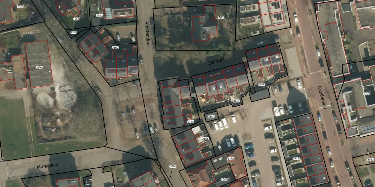 Het perceel waarop De Wiel 4-a staat heeft een oppervlakte van 455 m². Dit is een groot perceel. De perceeloppervlakte wordt geregistreerd door het Kadaster. Gedetailleerde informatie over de maten van dit perceel kunt u vinden in het rapport Kadastrale kaart met maatvoering van De Wiel 4-a.