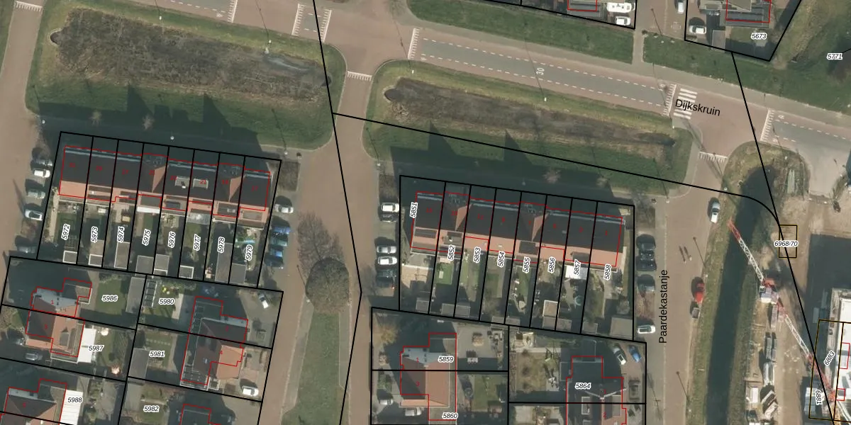 Dijkskruin 15 is gelegen op kadastraal perceel CUI00A5851. Deze kadastrale aanduiding is uniek en wordt gebruikt door het Kadaster om eigendomsrechten en andere zakelijke rechten vast te leggen. Het perceel maakt onderdeel uit van de kadastrale gemeente Cuijk.