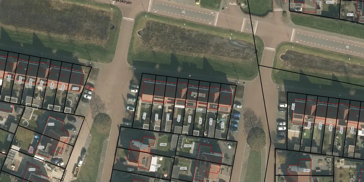 Dijkskruin 25 is gelegen op kadastraal perceel CUI00A5975. Deze kadastrale aanduiding is uniek en wordt gebruikt door het Kadaster om eigendomsrechten en andere zakelijke rechten vast te leggen. Het perceel maakt onderdeel uit van de kadastrale gemeente Cuijk.