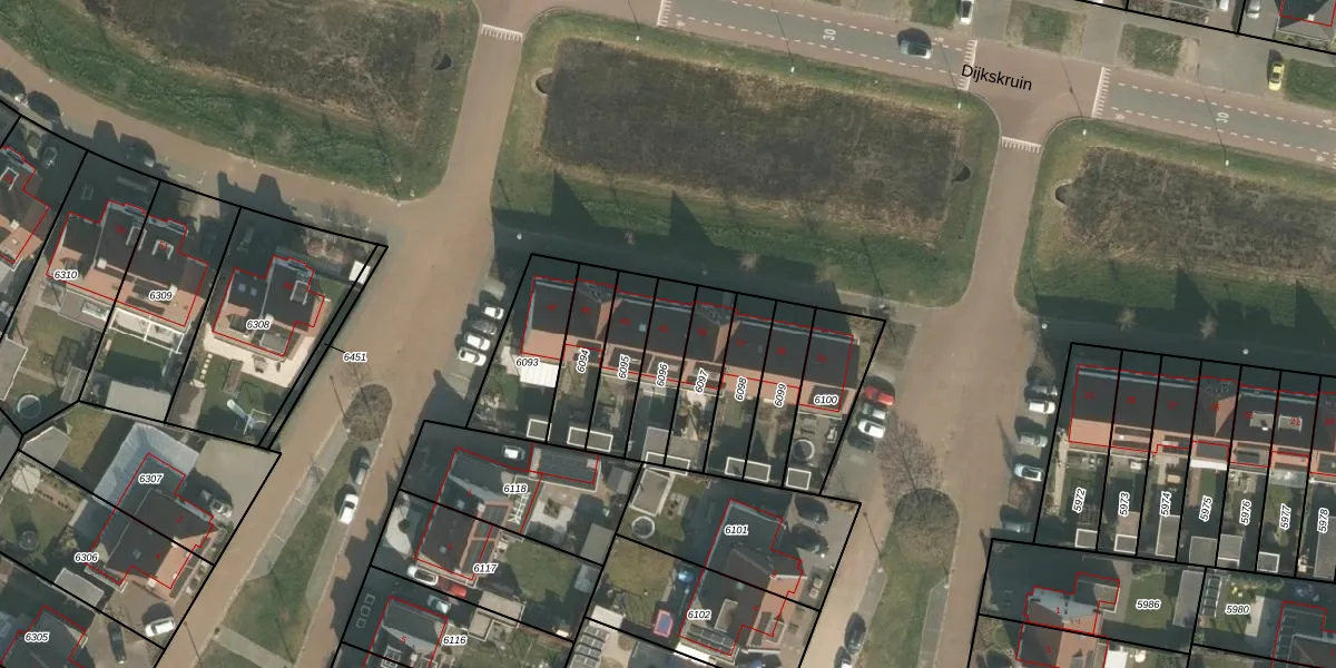 Gebruik de zoekbalk of klik op een perceel voor informatie over de adressen binnen dit perceel.