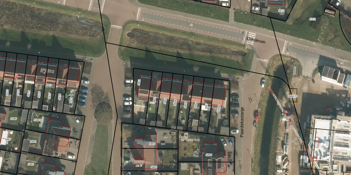 Dijkskruin 9 is gelegen op kadastraal perceel CUI00A5854. Deze kadastrale aanduiding is uniek en wordt gebruikt door het Kadaster om eigendomsrechten en andere zakelijke rechten vast te leggen. Het perceel maakt onderdeel uit van de kadastrale gemeente Cuijk.