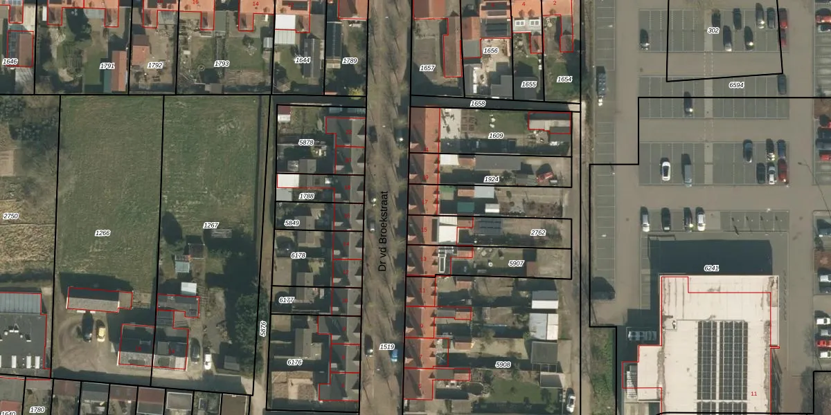 Het perceel waarop Dr vd Broekstraat 17 staat heeft een oppervlakte van 2606 m². Dit is een zeer groot perceel. De perceeloppervlakte wordt geregistreerd door het Kadaster. Gedetailleerde informatie over de maten van dit perceel kunt u vinden in het rapport Kadastrale kaart met maatvoering van Dr vd Broekstraat 17.