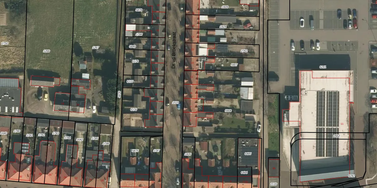 Dr vd Broekstraat 9 is gelegen op kadastraal perceel CUI00A5908. Deze kadastrale aanduiding is uniek en wordt gebruikt door het Kadaster om eigendomsrechten en andere zakelijke rechten vast te leggen. Het perceel maakt onderdeel uit van de kadastrale gemeente Cuijk.