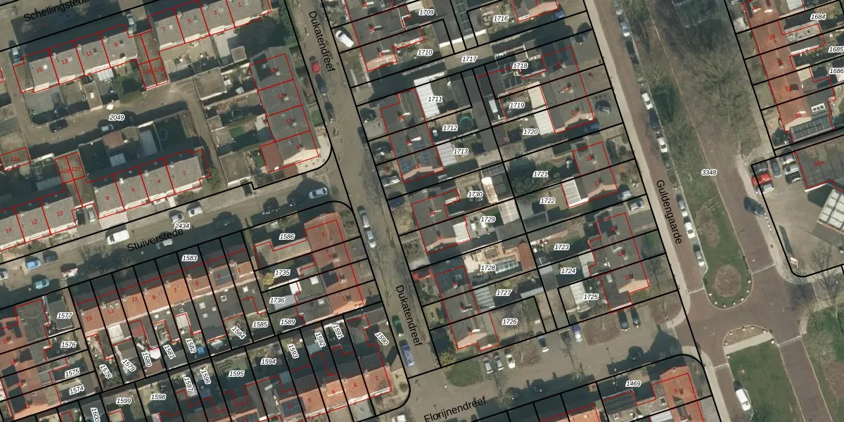 Het perceel waarop Dukatendreef 10 staat heeft een oppervlakte van 256 m². Dit is een middelgroot perceel. De perceeloppervlakte wordt geregistreerd door het Kadaster. Gedetailleerde informatie over de maten van dit perceel kunt u vinden in het rapport Kadastrale kaart met maatvoering van Dukatendreef 10.