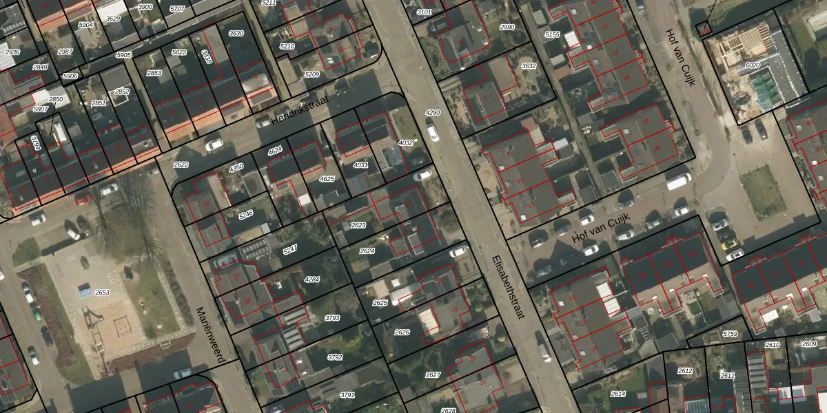 Elisabethstraat 12 is gelegen op kadastraal perceel CUI00C2623. Deze kadastrale aanduiding is uniek en wordt gebruikt door het Kadaster om eigendomsrechten en andere zakelijke rechten vast te leggen. Het perceel maakt onderdeel uit van de kadastrale gemeente Cuijk.