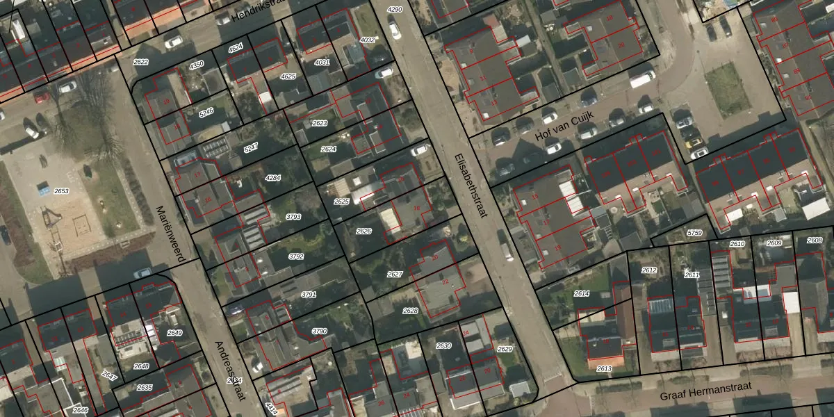Elisabethstraat 18 is gelegen op kadastraal perceel CUI00C2626. Deze kadastrale aanduiding is uniek en wordt gebruikt door het Kadaster om eigendomsrechten en andere zakelijke rechten vast te leggen. Het perceel maakt onderdeel uit van de kadastrale gemeente Cuijk.