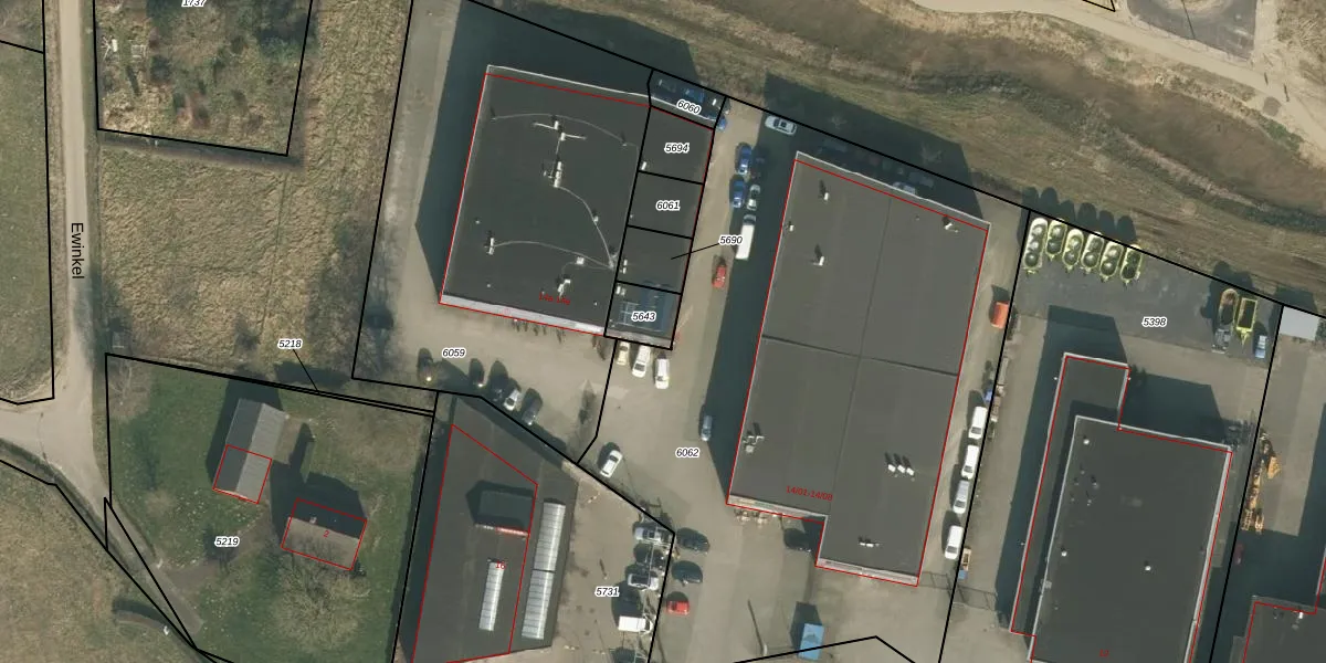 Ewinkel 14-d is gelegen op kadastraal perceel CUI00A5643. Deze kadastrale aanduiding is uniek en wordt gebruikt door het Kadaster om eigendomsrechten en andere zakelijke rechten vast te leggen. Het perceel maakt onderdeel uit van de kadastrale gemeente Cuijk.