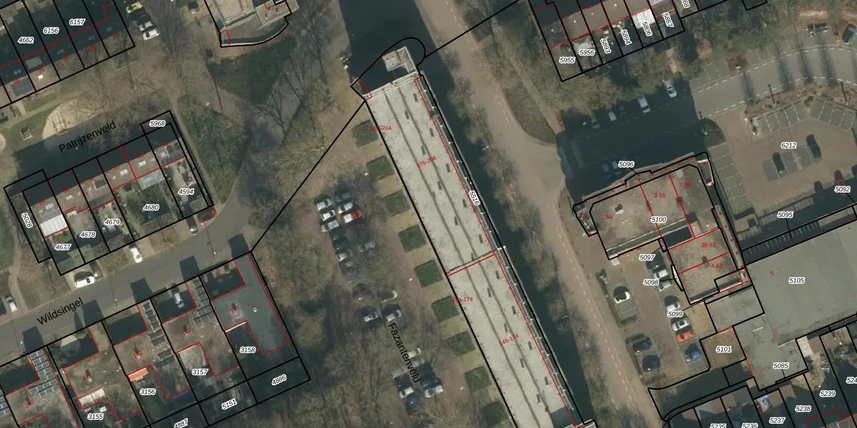 Het perceel waarop Fazantenveld 183 staat heeft een oppervlakte van 1543 m². Dit is een zeer groot perceel. De perceeloppervlakte wordt geregistreerd door het Kadaster. Gedetailleerde informatie over de maten van dit perceel kunt u vinden in het rapport Kadastrale kaart met maatvoering van Fazantenveld 183.