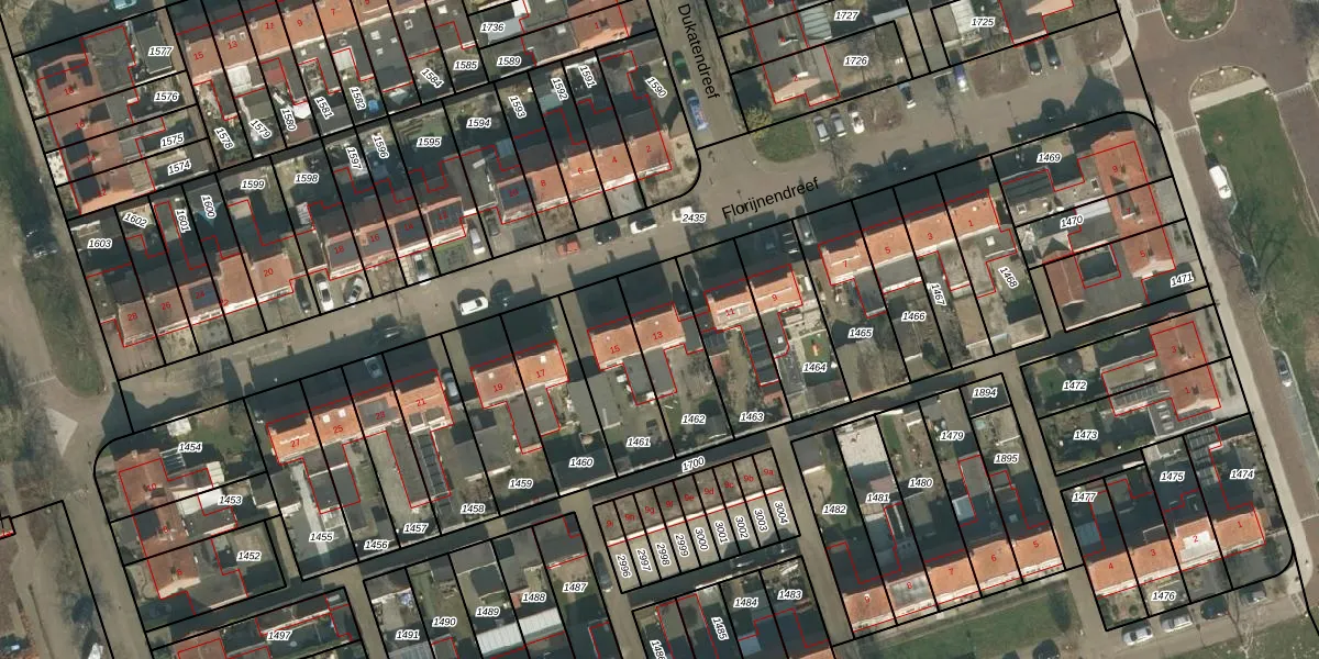 Florijnendreef 13 is gelegen op kadastraal perceel CUI00A1462. Deze kadastrale aanduiding is uniek en wordt gebruikt door het Kadaster om eigendomsrechten en andere zakelijke rechten vast te leggen. Het perceel maakt onderdeel uit van de kadastrale gemeente Cuijk.