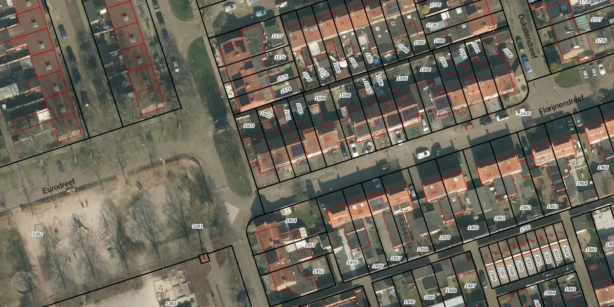Gebruik de zoekbalk of klik op een perceel voor informatie over de adressen binnen dit perceel.