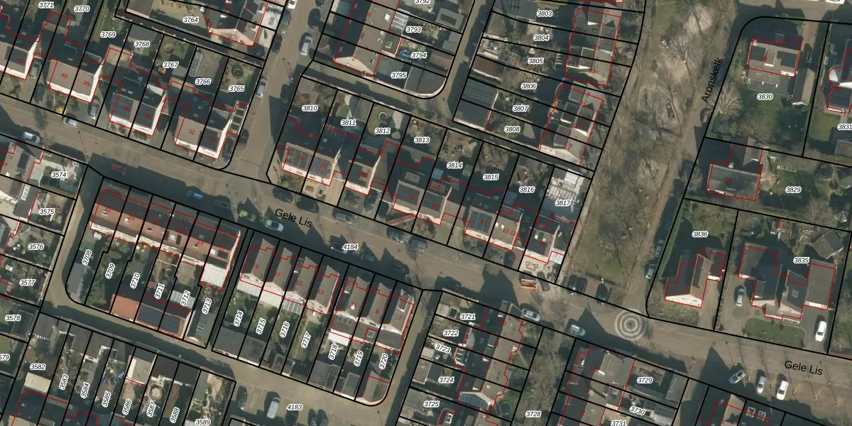 Gele Lis 16 is gelegen op kadastraal perceel CUI00A3814. Deze kadastrale aanduiding is uniek en wordt gebruikt door het Kadaster om eigendomsrechten en andere zakelijke rechten vast te leggen. Het perceel maakt onderdeel uit van de kadastrale gemeente Cuijk.