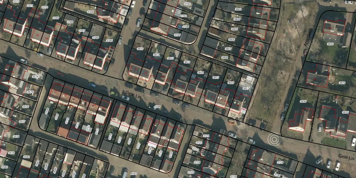 Gele Lis 18 is gelegen op kadastraal perceel CUI00A3813. Deze kadastrale aanduiding is uniek en wordt gebruikt door het Kadaster om eigendomsrechten en andere zakelijke rechten vast te leggen. Het perceel maakt onderdeel uit van de kadastrale gemeente Cuijk.
