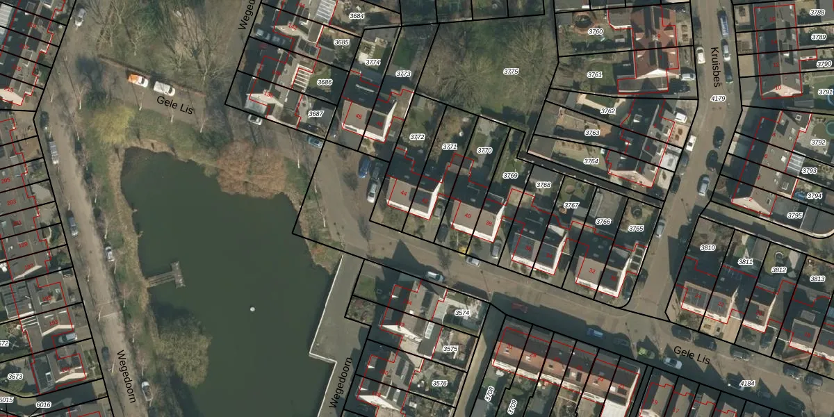 Gele Lis 42 is gelegen op kadastraal perceel CUI00A3771. Deze kadastrale aanduiding is uniek en wordt gebruikt door het Kadaster om eigendomsrechten en andere zakelijke rechten vast te leggen. Het perceel maakt onderdeel uit van de kadastrale gemeente Cuijk.