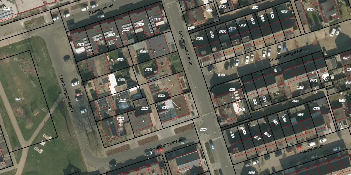 Gebruik de zoekbalk of klik op een perceel voor informatie over de adressen binnen dit perceel.