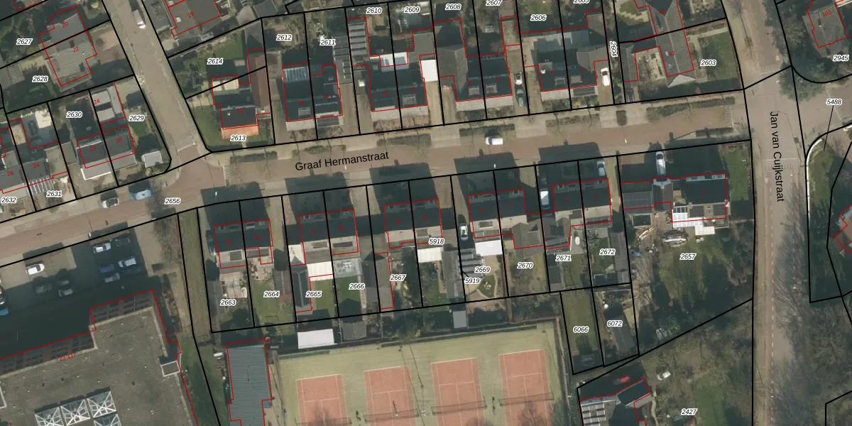 Het perceel waarop Graaf Hermanstraat 11 staat heeft een oppervlakte van 300 m². Dit is een groot perceel. De perceeloppervlakte wordt geregistreerd door het Kadaster. Gedetailleerde informatie over de maten van dit perceel kunt u vinden in het rapport Kadastrale kaart met maatvoering van Graaf Hermanstraat 11.