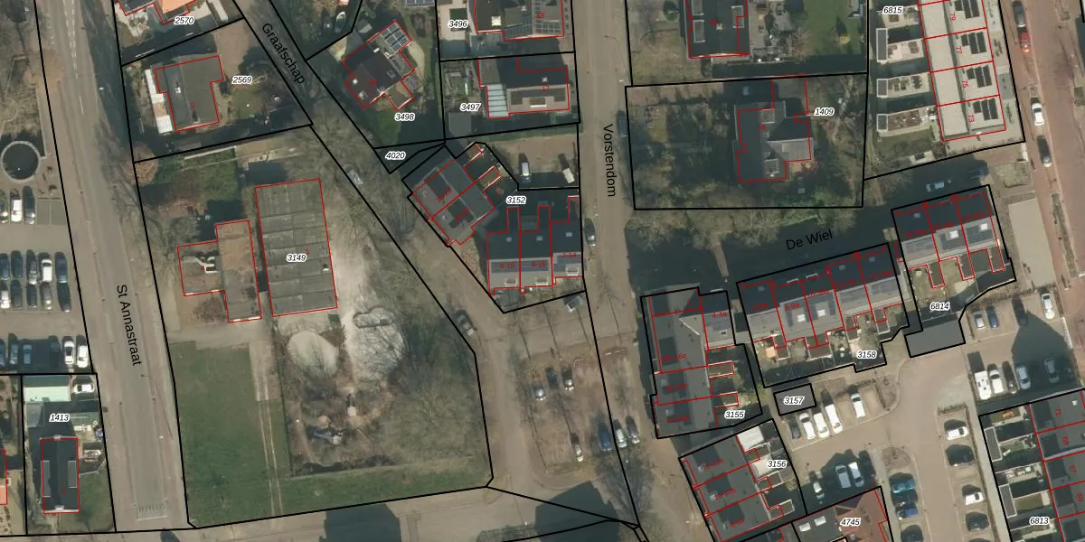 Het perceel waarop Graafschap 4 staat heeft een oppervlakte van 645 m². Dit is een groot perceel. De perceeloppervlakte wordt geregistreerd door het Kadaster. Gedetailleerde informatie over de maten van dit perceel kunt u vinden in het rapport Kadastrale kaart met maatvoering van Graafschap 4.