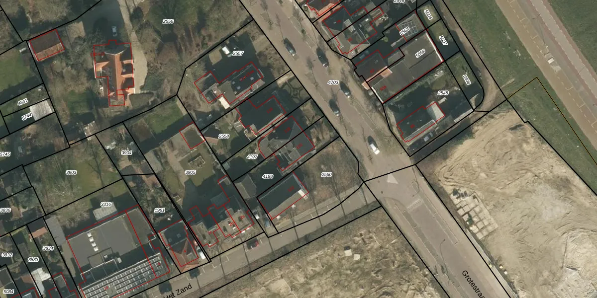 Gebruik de zoekbalk of klik op een perceel voor informatie over de adressen binnen dit perceel.